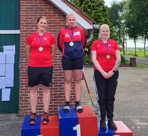 Eine bärenstarke Leistung lieferte auch Mareille Folkens beim Feldkampf ab. Mit 958,40m verpasste sie um nur 8,20m die Bronzemedaille und wurde hinter ihrer Mannschaftskameradin Wiebke Schröder vierte. Im strömenden Regen verlor sie dabei die entscheidenden Meter beim dritten und achten Wurf, die etwas zu hoch kamen, während die anderen Würfe alle top waren. Für die Mannschaft sprang hier, hinter den Niederländern, die Silbermedaille heraus, so daß auch Mareille eine Medaille mit nach Hause brachte.