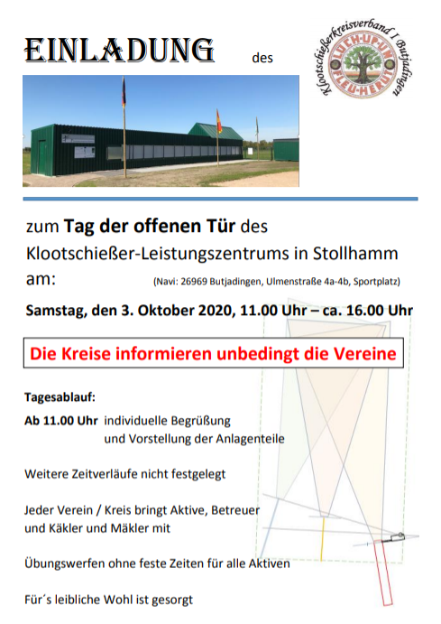 aufgrund der Ereignisse um das Corona-Virus, verbunden mit Empfehlungen und Vorschriften seitens der Behörden zum Verhalten bei Veranstaltungen (Sportveranstaltungen), hat der Kreisvorstand gemeinsam mit dem Ausrichter des Pokalwerfens, den KBV Waddens, sich entschlossen, das Pokalwerfen abzusagen.